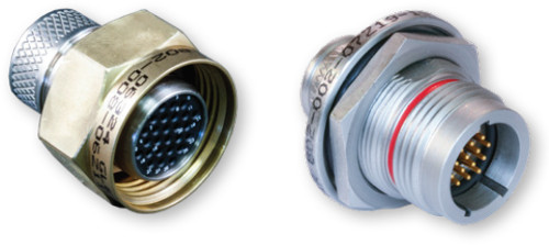 802 系列連接器最初是為石油管道檢測設備開發的,有 10 種尺寸可供選擇,觸點從 1 到 130 個,并配備氟橡膠? O 形圈,可承受腐蝕性化學品和高溫環境。這些連接器具有高密度壓接 Mighty Mouse 插件、316 不銹鋼或船用青銅外殼以及用于靜壓密封的活塞 O 形圈。802 系列絕緣電線、面板安裝插座可訂購方形法蘭、直插式或鎖緊螺母版本。選擇整體式屏蔽端接平臺或附件螺紋,以與各種應力消除選項一起使用。壓接式鍍金壓接觸點接受 #12–30 線。連接器用環氧樹脂灌封膠回填。密封玻璃密封連接器帶有焊杯觸點(不可拆卸)或 PC 尾部。100% 測試符合 1 x 10 標準-7cc/sec 氦氣泄漏。開面壓力額定值 3500 PSI。
